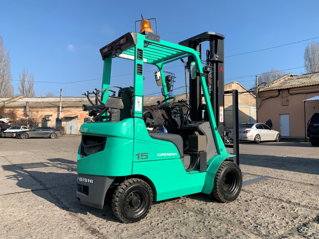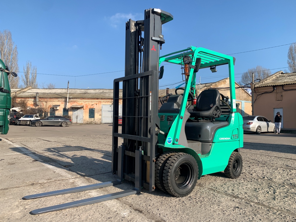 Автонавантажувач вилковий Mitsubishi, на спарці пневмо, з щоглою триплекс 5.5 метрів. Напрацювання 9475 мотогодин. Випуск грудень 2016 року. Модель FGE15T. Номiнальна вантажопідйомність 1.5 тонни. Максимальна висота підйому вантажу 5.5 метри. Щогла трьохсекційна (triplex/триплекс) у якій вила піднімаються незалежно від секцій щогли (з вільним ходом). Двигун газ-бензиновий, з заводським газовим обладнанням, завдяки чому автонавантажувач у теплу пору року можє запускатись вiдразу на газу, без прогріву системи на бензині. Коробка перемикання передач надiйна i найпоширенiша на данний час - гiдромеханiка (автоматична із гідротрансформатором). Обладнаний сучасним економічним інжекторним двигуном Nissan K21. 4-циліндровим, робочим об'ємом 2.1 літра і потужністю 48 к. с. який славиться своєю надійністю і невибагливістю і без особливих змін встановлюється на автонавантажувачах по сьогоднішній день і головне ремонтопридатний. Колеса спарка 12 діаметра на ведучiй осі, що покращує прохідність автонавантажувача і збільшує його кліренс. Додатково встановлена грубка.