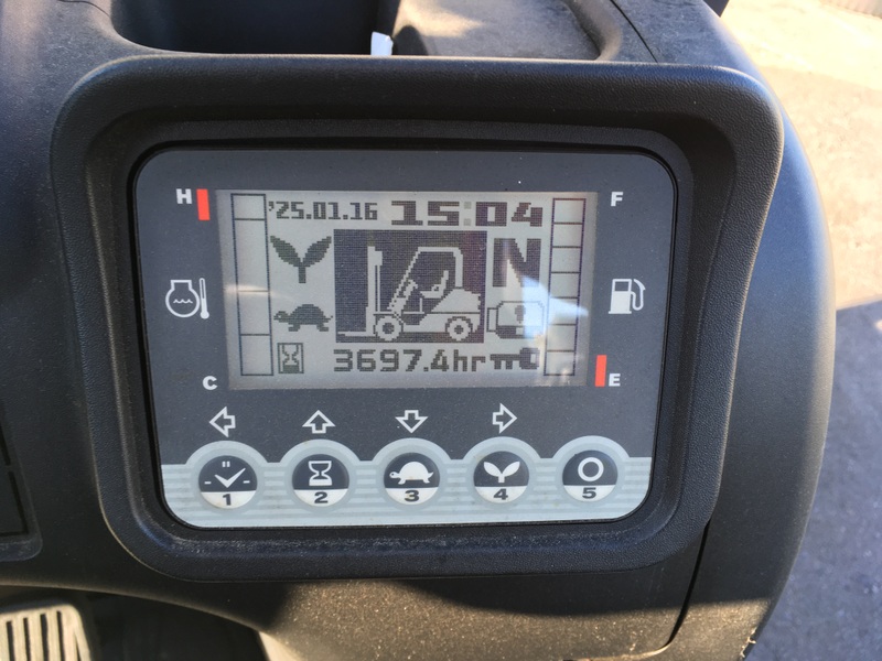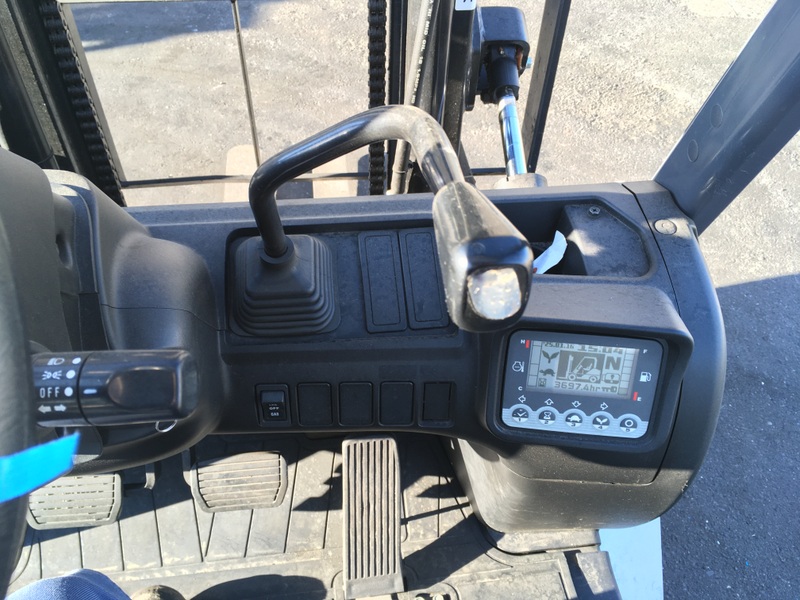 Модель: FHGE25T5. Номiнальна вантажопідйомність 2.5 тонни. Максимальна висота підйому вантажу 3 метри. Щогла двохсекційна (duplex) яка не втрачає вантажопідйомності при висоті підйому. Двигун газ-бензиновий, з заводським газовим обладнанням, завдяки чому автонавантажувач у теплу пору року можє запускатись вiдразу на газу, без прогріву системи на бензині. 2018 рiк (напрацювання 3697 мотогодин). Меню перекладено англійською мовою для зручності. Коробка перемикання передач надiйна i найпоширенiша на данний час - гiдромеханiка (автоматична із гідротрансформатором). Обладнаний найсучаснішим двигуном, економічним інжекторним Nissan GK25. 4-циліндровий, робочим об'ємом 2.5 літра і потужністю 54 к. с. який славиться своєю надійністю і невибагливістю і без змін встановлюється на автонавантажувачах по сьогоднішній день і головне ремонтопридатний. Колеса 12 діаметра на ведучiй осі, що покращує прохідність автонавантажувача і збільшує його кліренс.