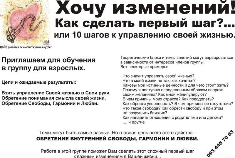 Работа в этой группе поможет Вам сделать этот важный первый шаг к приятным изменениям в Вашей жизни...