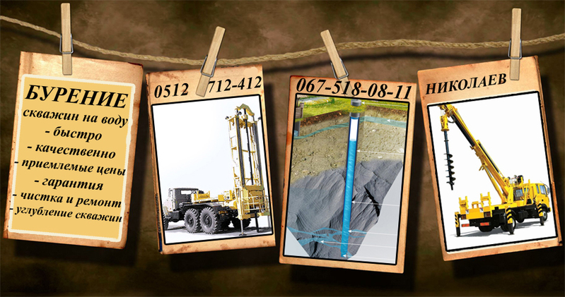 Бурение артезианских скважин на воду: быстро, качественно, доступные цены, гарантия на обслуживание, глубина бурения до 80 м, углубление скважин, ремонт и чистка скважин. Предварительный осмотр места бурения. Бурение под столбики, столбы. УГБ 1ВС на базе ЗИЛ-131. Работаем по Николаеву и области (свыше 70 км от города). Самые ДОСТУПНЫЕ цены в городе.