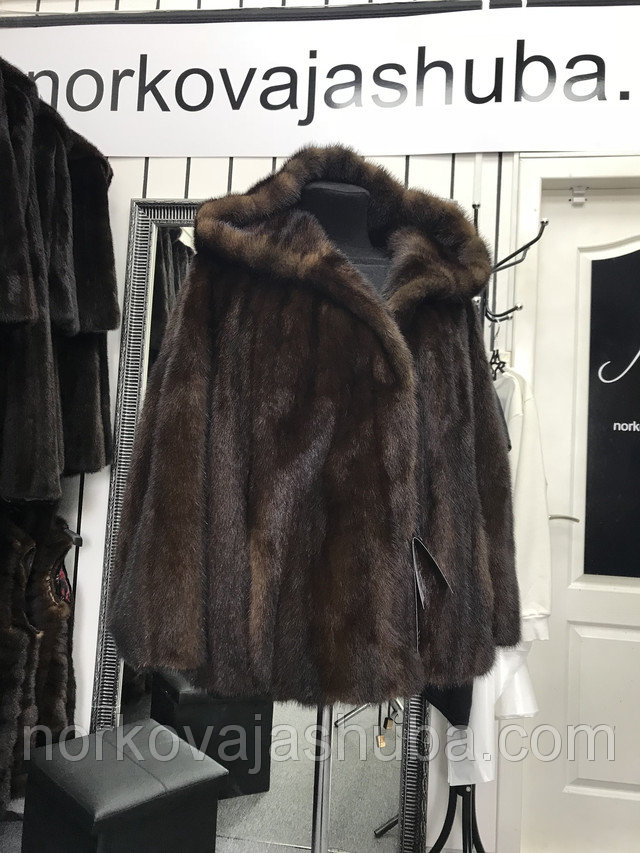 Женский норковый полушубок автоледи выполнен из канадской норки натурального орехового окраса. Модель изделия -трапеция, ширина шубки снизу регулируется кулисой. Капюшон объемный и глубокий, модель кобра. Рукава прямые реглан. Длина полушубка 60 см. Размер 50 52.