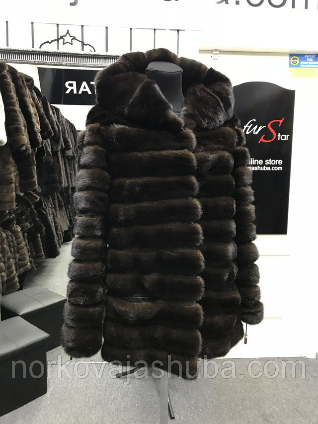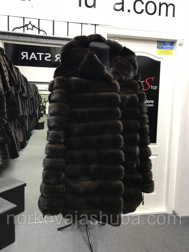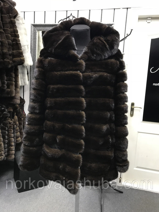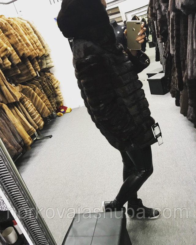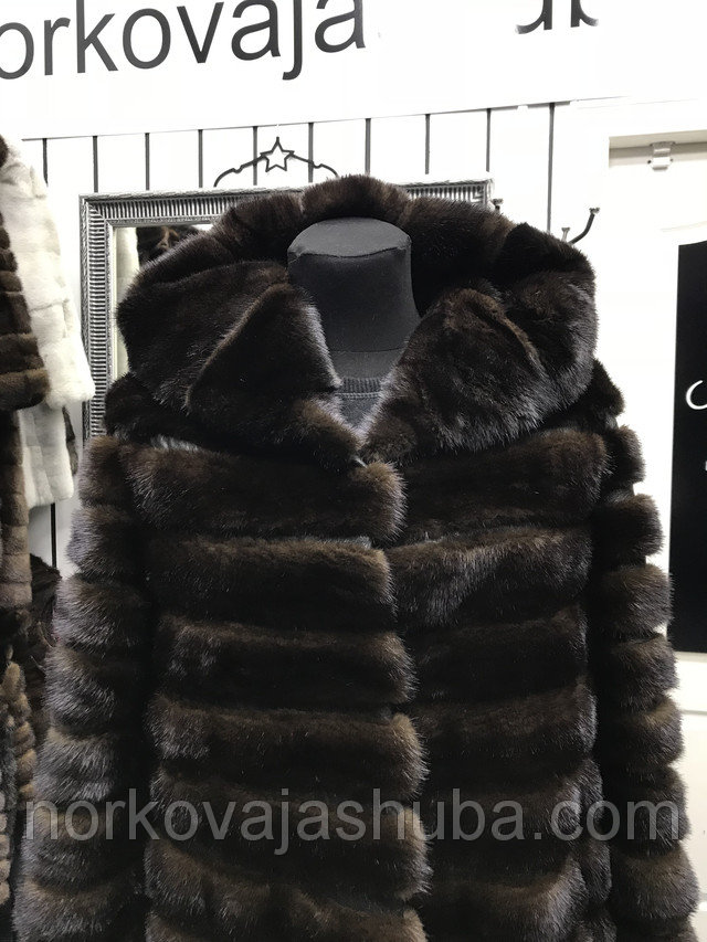 Купить норковый полушубок с капюшоном поперечка размер 40 42 44